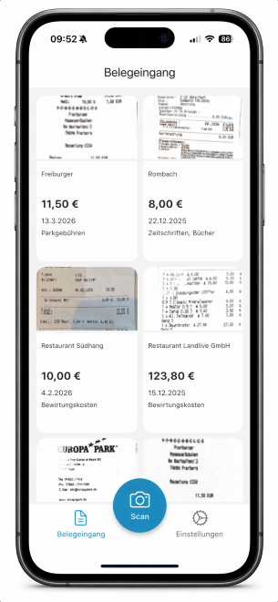Erfassen Sie Belege direkt unterwegs – ohne Umwege und ohne Papierchaos.